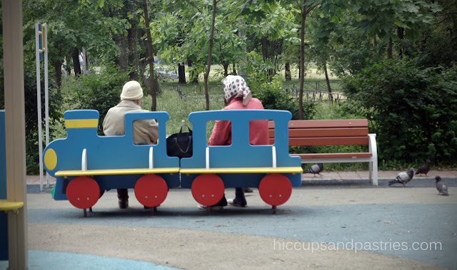 Who wouldn’t want to play in these things? Even the babushki can’t resist.