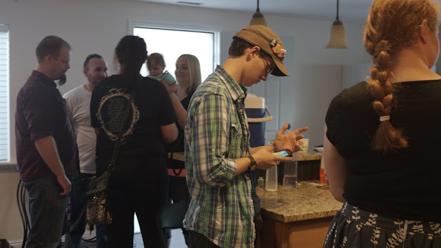 This picture was taken before the game. You can tell, since people haven’t warmed up enough to each other yet to be hanging out in the same circles. 😉
