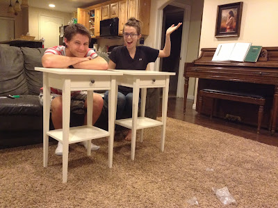 I had in mind that we could cut and bolt together our own nightstands, but there wasn’t ever enough time to commit to such a project. On a whim trip to IKEA one fine day, we happened to find night tables on sale that nicely fit the style of our room. So home they came.