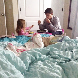 I was sick for a weekend and unable to eat at the table. Taylor improvised by bringing the dinner table to me.