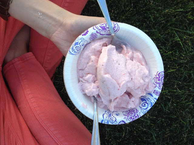 We received an ice cream maker as a wedding gift years ago, but it took us forever to get brave and try it out. I thought it would take years of hard work before we eeked out a spoonful of the dessert. Turns out it only takes 15 minutes. Now it’s a regular.