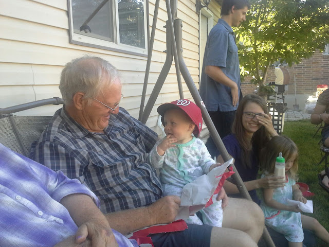 We don’t often see Taylor’s family, so it was great to spend some of a morning with his grandparents. I’m not sure where Arrow was for this picture, but if I’m to guess, she’s likely behind the couch.
