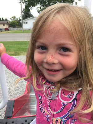 She was crying, which was a good sign. She was breathing, albeit loudly. There was so much blood all around. Luckily neither Taylor and I are affected by blood (although it’s more shocking to see your own baby bleeding than anyone else’s). It took a minute to figure out the source of all the bleeding, which fortunately was only her nose. We took a break to clean up and play with some sand in the shade. A repeat talk of running off suddenly made more sense to her and we didn’t have trouble for the rest of the day 🙂