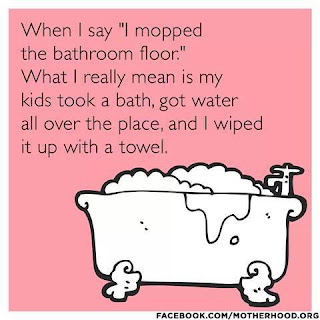 8:55 Go back to bathing children. Use these next phrases on repeat at least six times each:-quit using soap on your brother -oh that’s cool -oh good job -stop using soap on your brother -sit down -sit down -yes that’s really cool-put the soap backI’m ordering the children from afar while sitting on a pillow because the floor is hard on the tush.