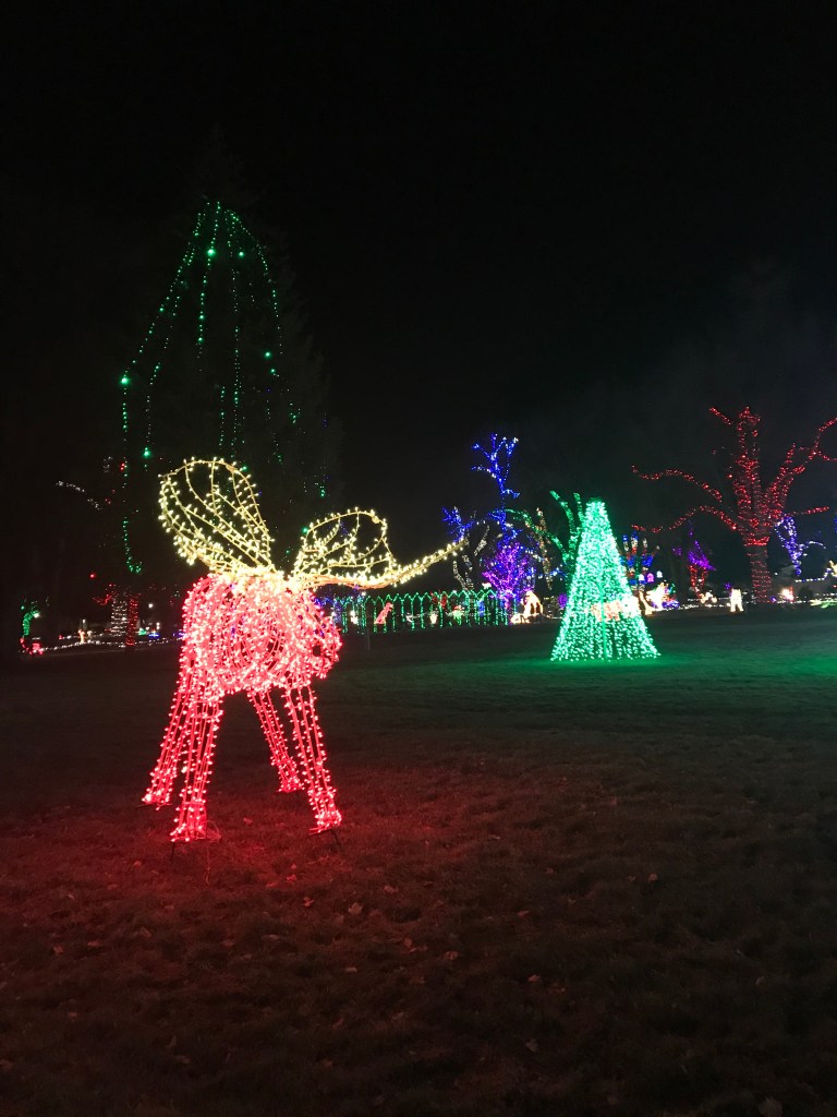 Our first celebration up was seeing some Christmas lights. The lights in our city park are strange.