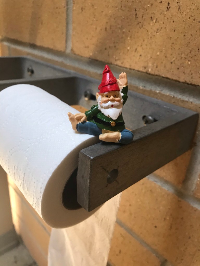 Someone stuck this in the women’s stall for me to find… (I have a rational and reasonable fear of gnomes, and so should the rest of you!)