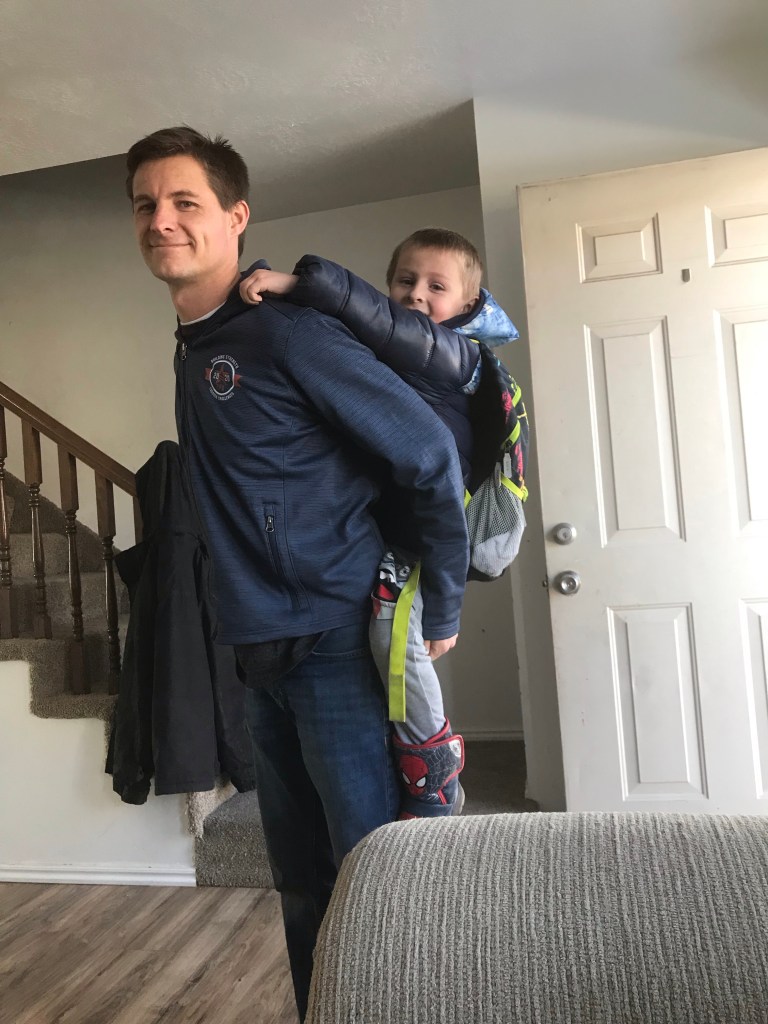 “Heavy work” for my boy. Part of his sensory homework from his OT 🙂