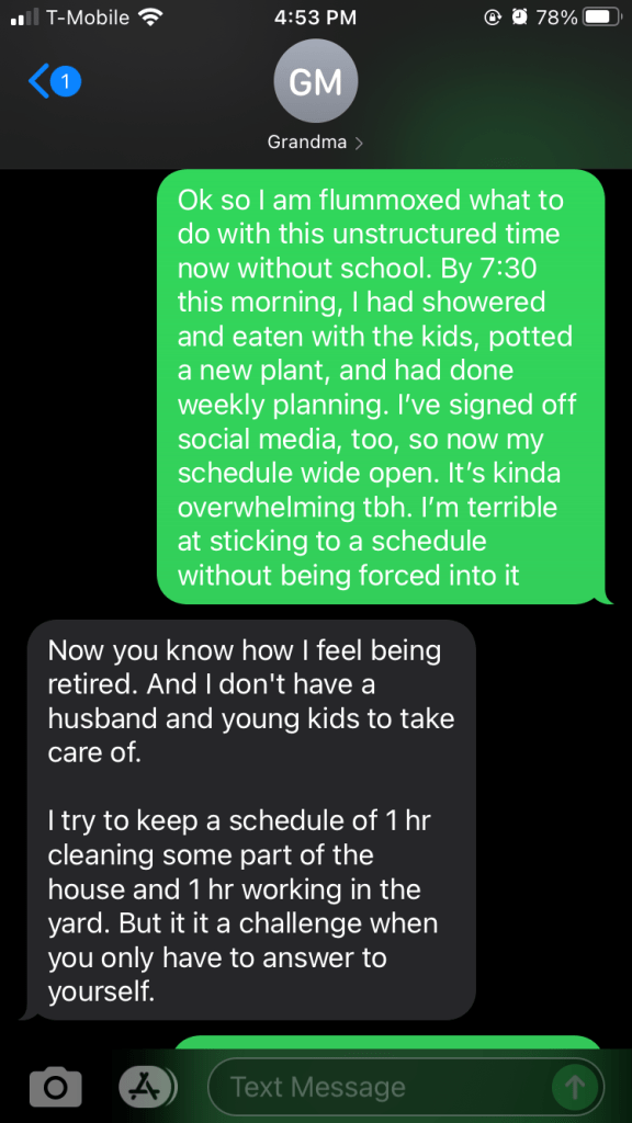 Sure, I was anxious to put the brand new degree to good use. Even if I am at home “full time” for the next couple of years, I do want something current on my resume for when I eventually go back to work. But to be free from Canvas notifications and pressure of perfecting an email? Man, I could not wait to experience life free from that stress.