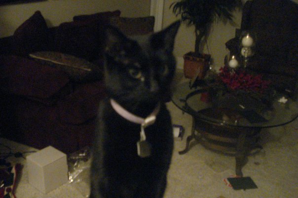 One or possibly two eternities later, my dad finally arrived with a white, small, house shaped box. Sort of like the cardboard boxes that carried home our Build A Bear stuffed toys. Upon opening the box, to our surprise, a very small and very black cat huddled in the corner, clearly terrified.