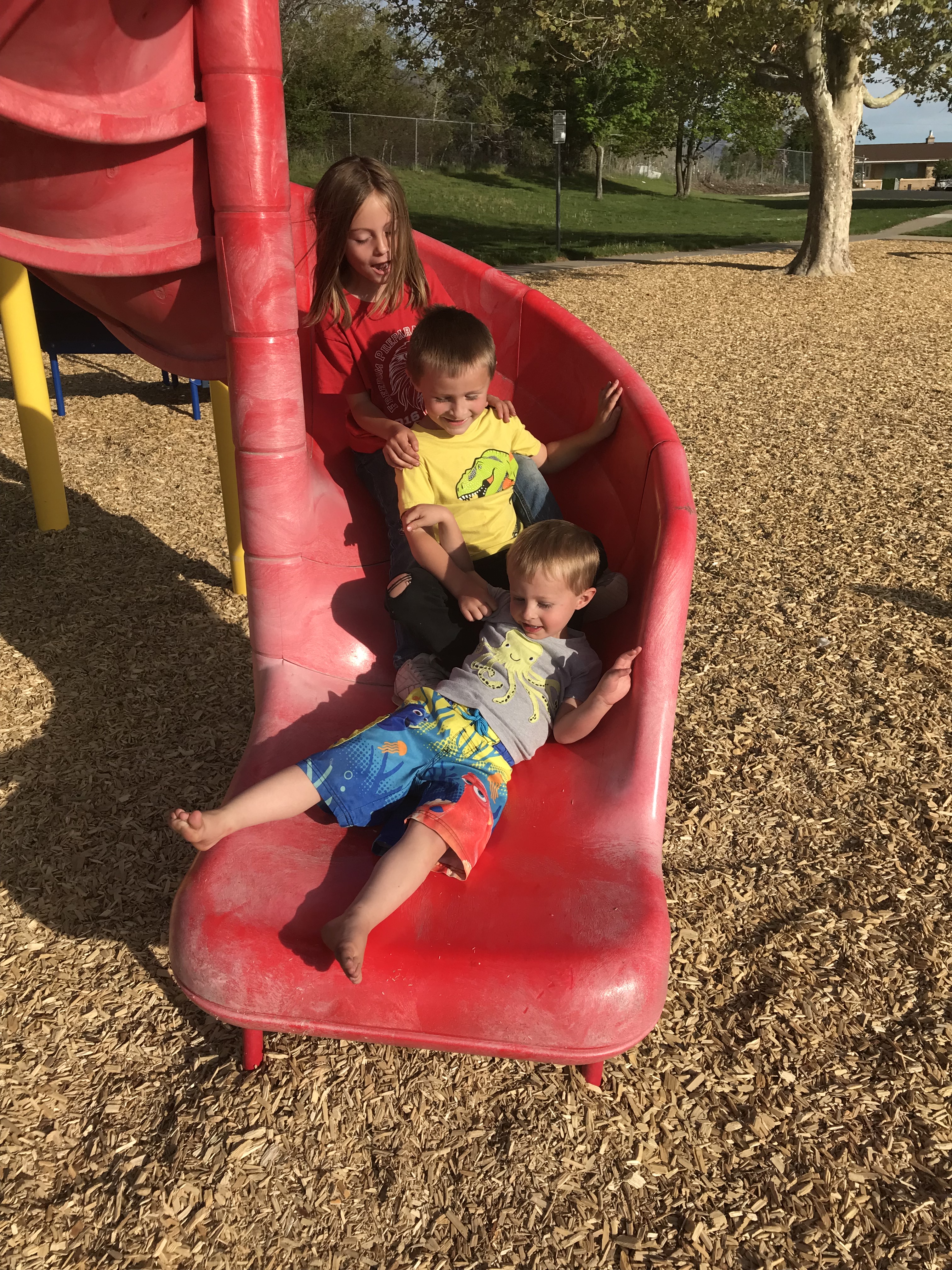 Love how these kids play together… from going down the slide: