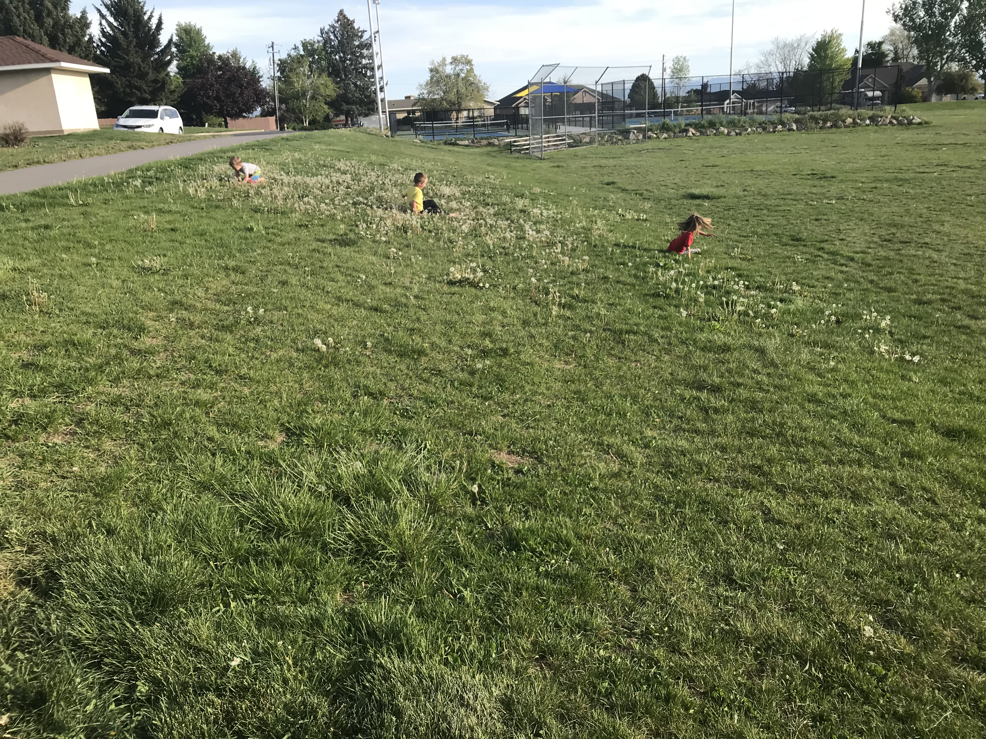 to rolling through dandelion “villages” (as Archer has been calling the large weed patches 🙂 )