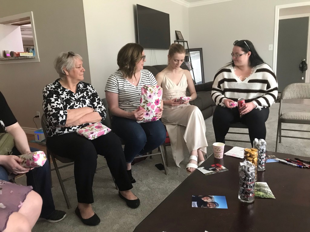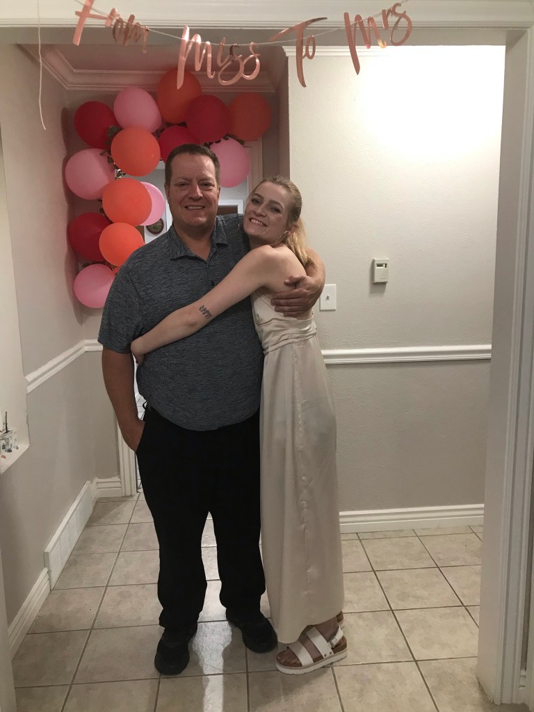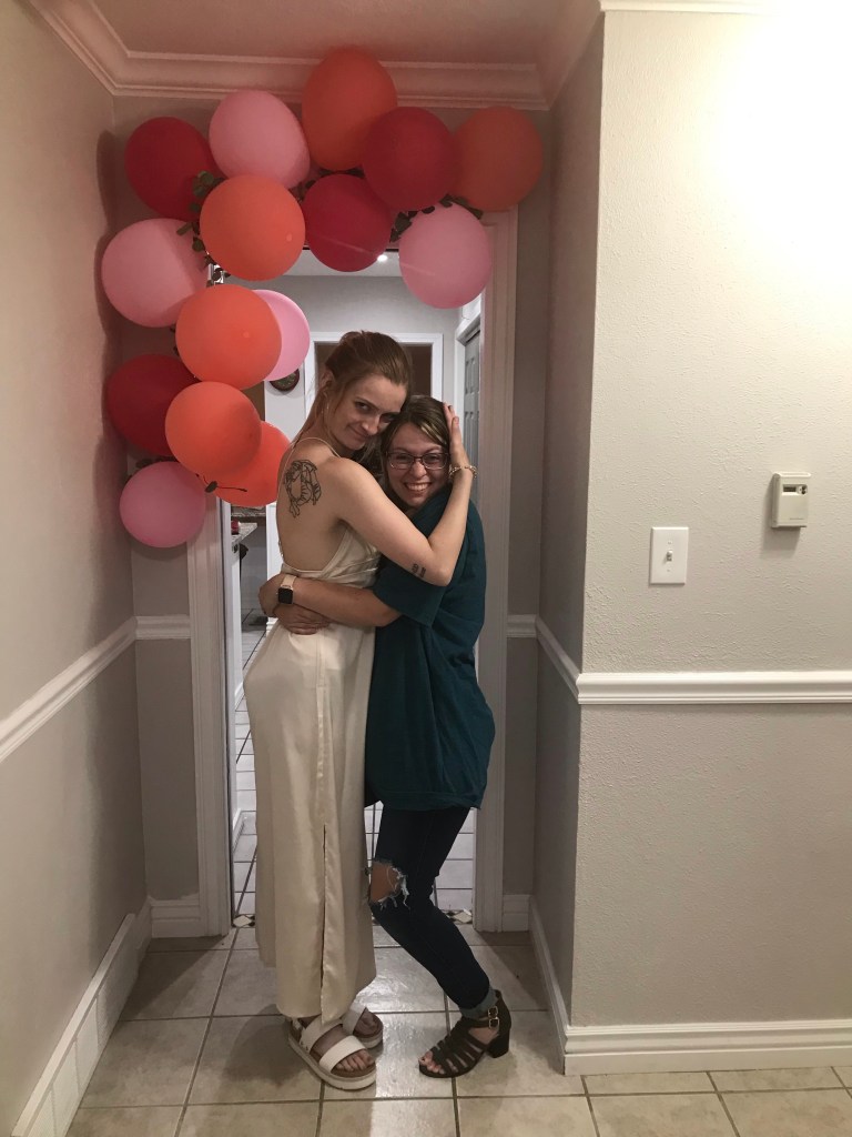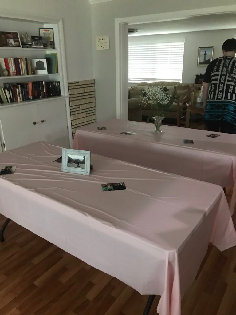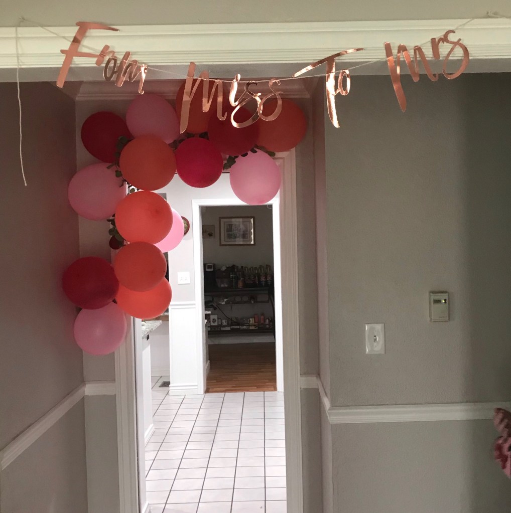 My mom hosted a bridal shower for the soon to be bride. My other sister Cami made this darling balloon bouquet and photo op spot. We recreated the Ky’s prom photo posing with my dad to Ky’s bridal shower with my dad 🙂