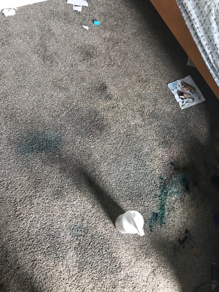 The battle wounds of the carpet remain, even after a solid week of fancy carpet cleaning treatment.