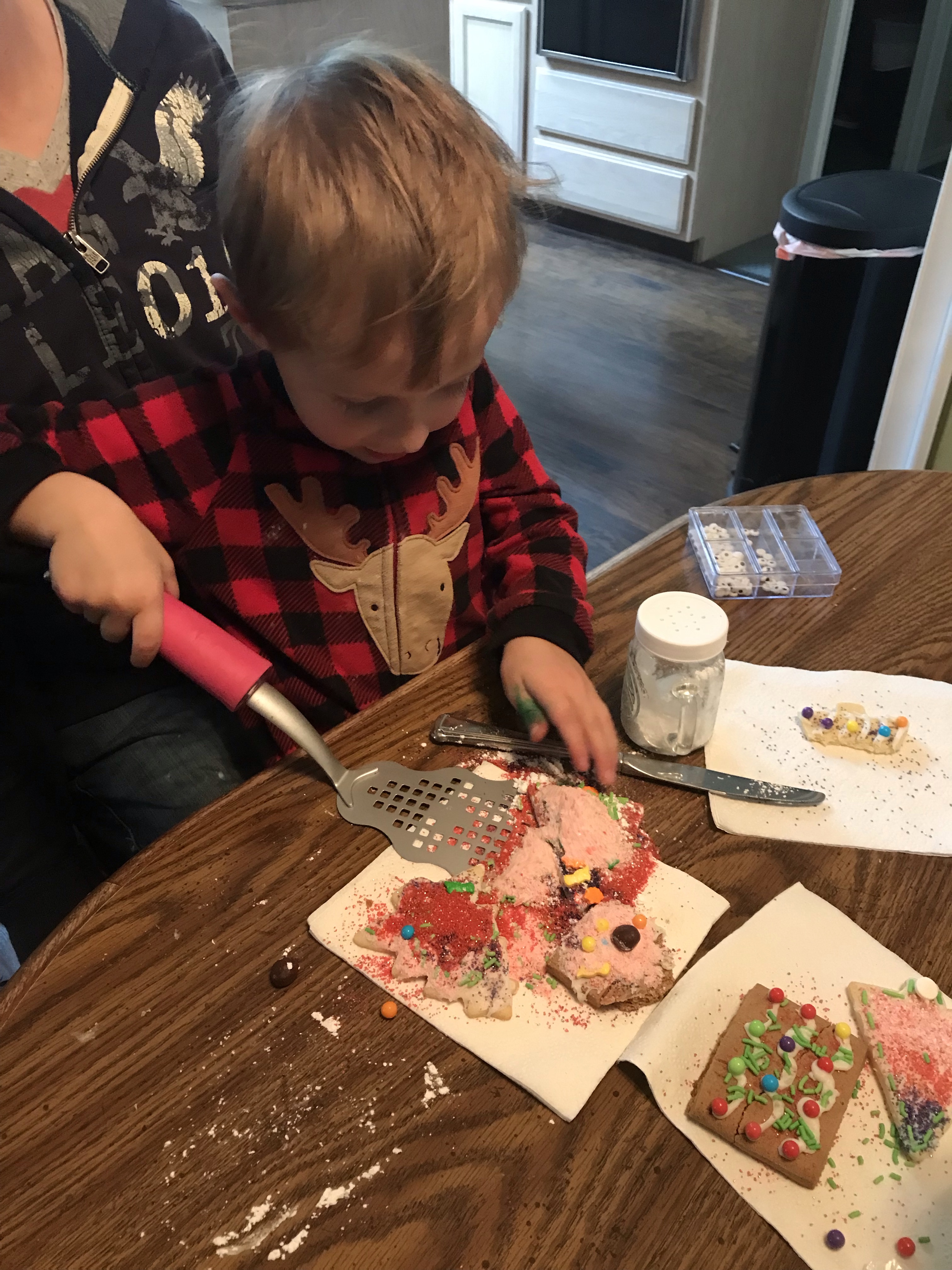 We didn’t have time to see the entire family on Christmas / Eve, so we got together a little early to visit & decorate cookies with some:
