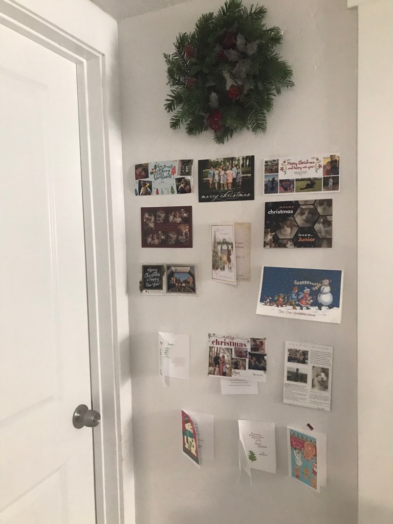 The Wall of Cheer was assembled with Christmas Cards sent from all over: