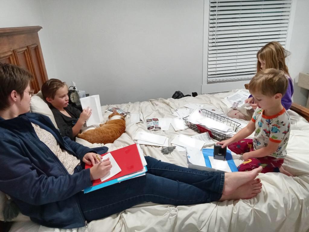 Speaking of Christmas Cards, we set up our own little workshop to mail our own: