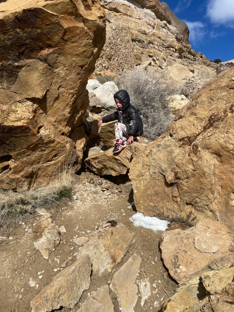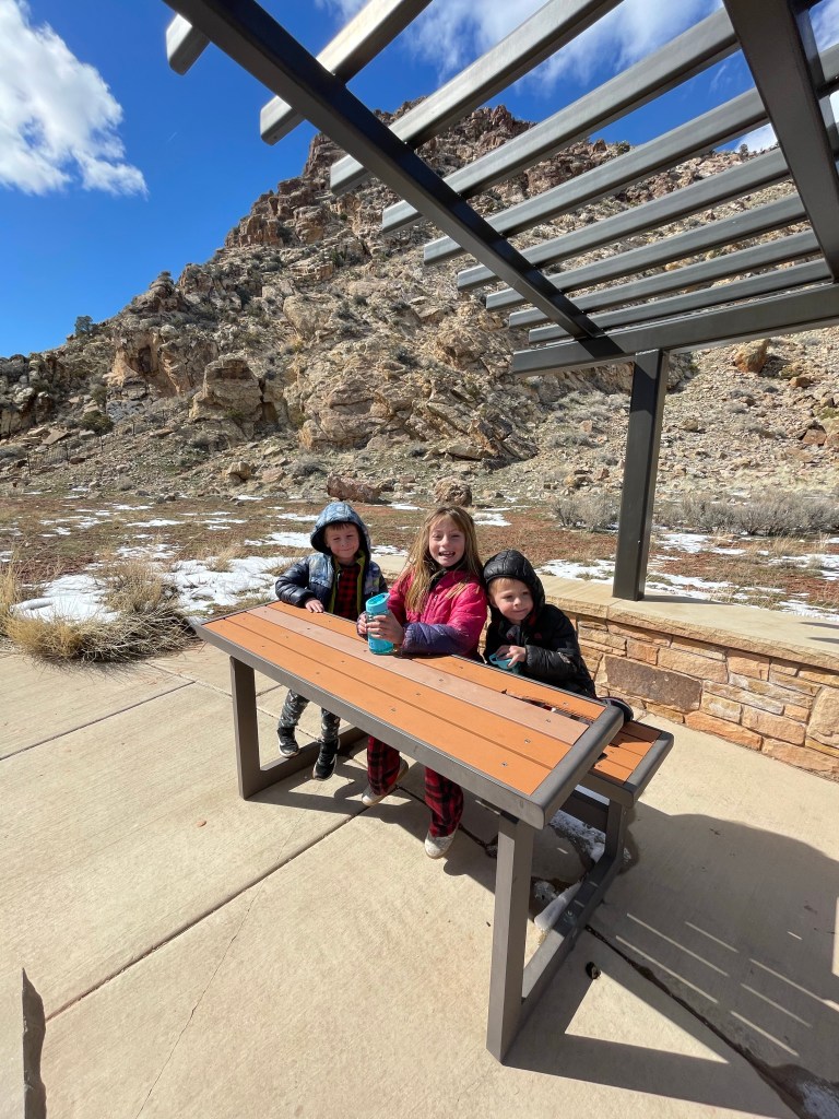 We took off from the park just after lunch. Which was good timing, since the entirety of Utah was starting to swarm in. But we couldn’t leave before the kids accomplished “The Ultimate Test”, which was climbing up this massive rock formation.