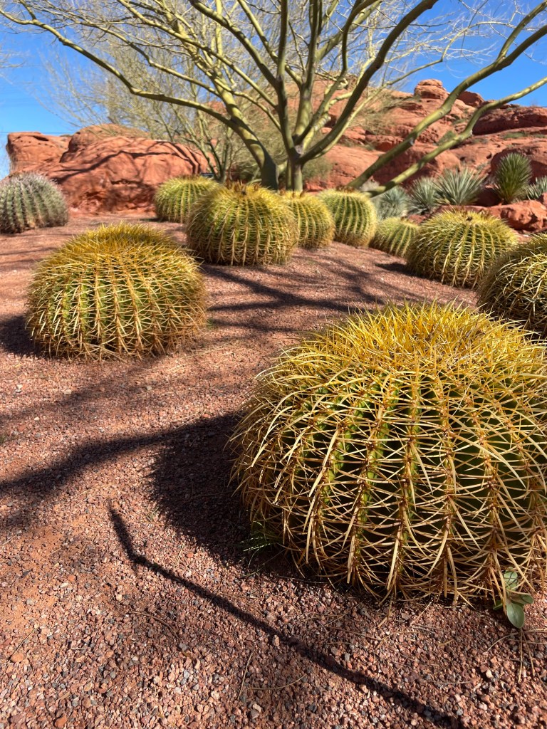 Our morning started with a visit to a desert botanical garden. I do not care that I already live in a desert and keep cactuses at home. I will always want to visit a garden especially if it has pokey poof poms.