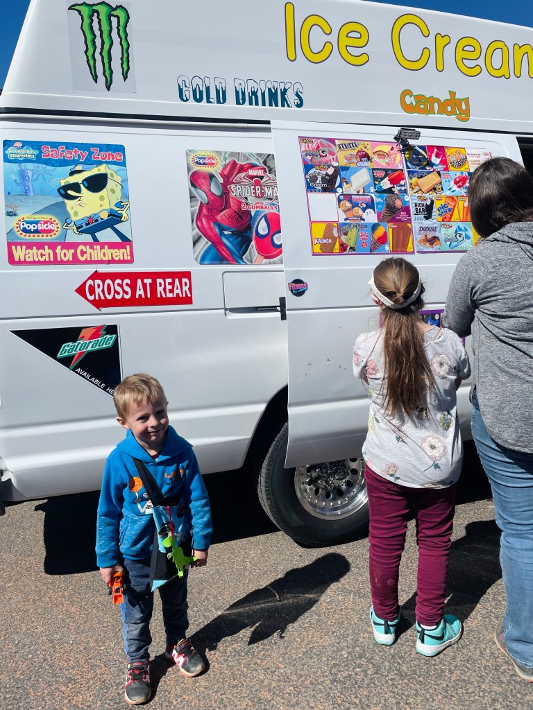The Ice Cream truck had arrived per Sander’s wish!!