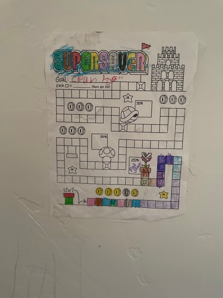 We hung this rad Mario-themed chart (free from debtfreecharts here!):