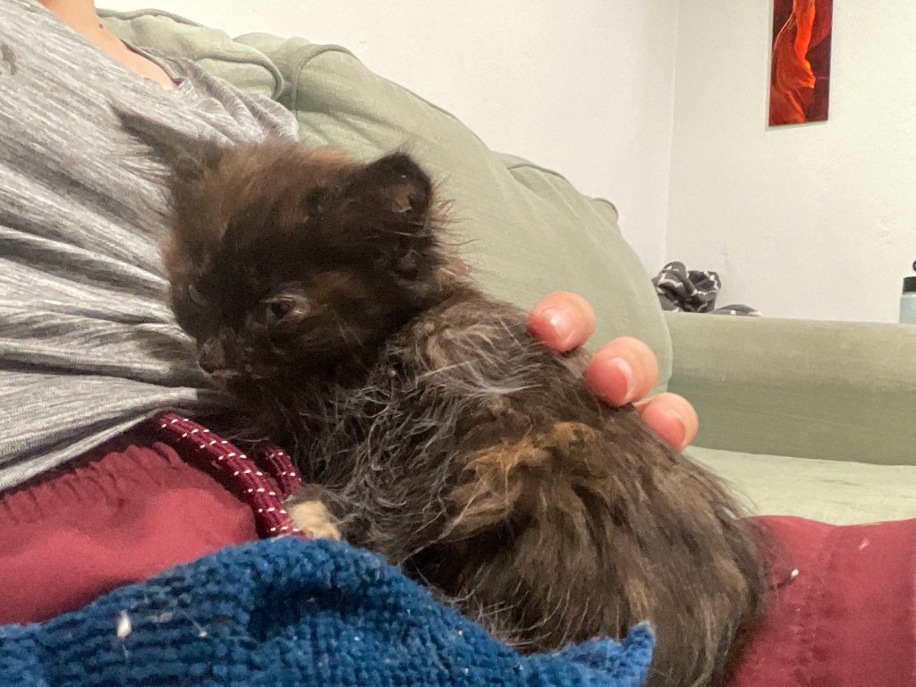 But they’re SO much fun to play and snuggle with! We love when Skittles unleashes the zoomies. Baby Penny is content to lay in your lap for hours. (Might be lethargic from undernourishment but we’re working on that…)