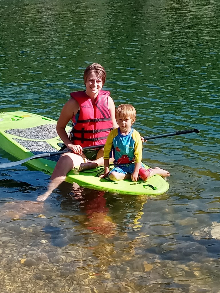 Arrow manned her own board all by herself!! One of us adults stayed nearby in case she needed help, but she didn’t need it after all 🙂