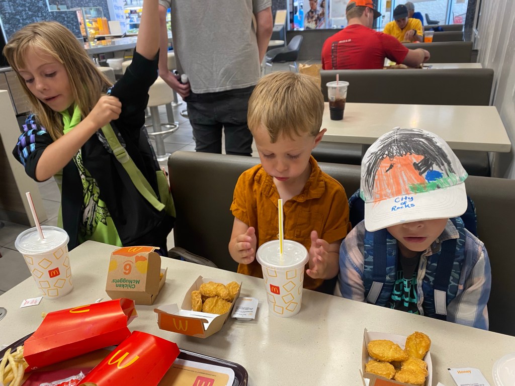 My dear grandma took the kids shoe shopping and a treat from McDonalds. Isn’t she glowing like an angel?!