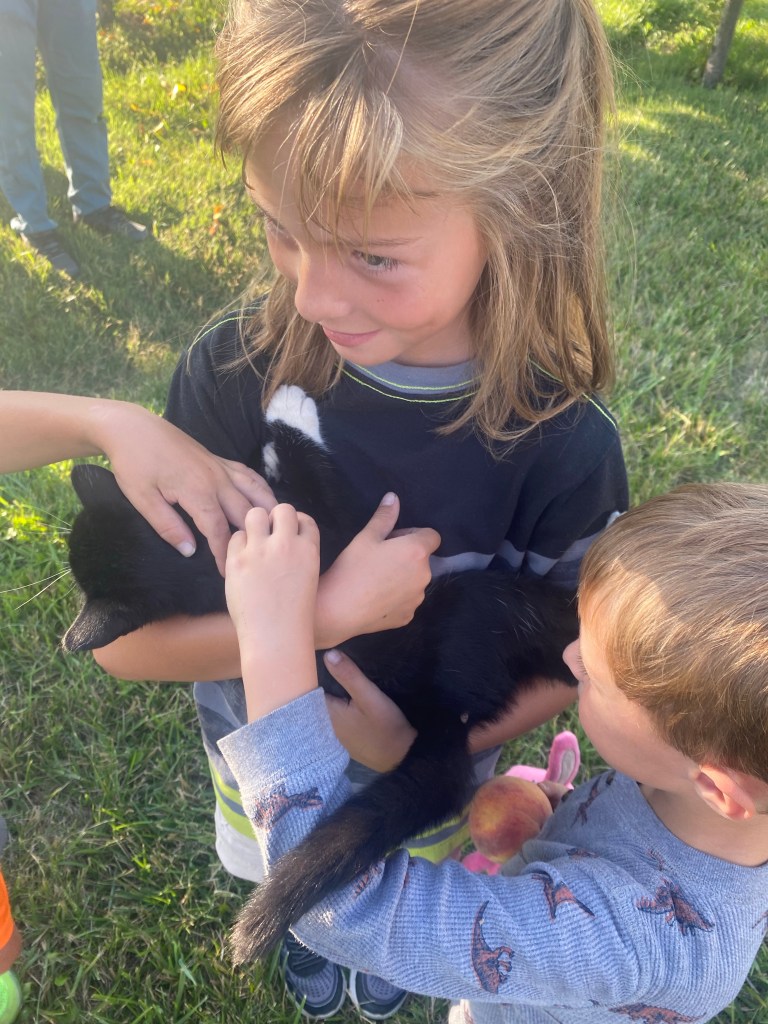 We roped the kids into collecting the fruits… and tending to the local fur friend 🙂