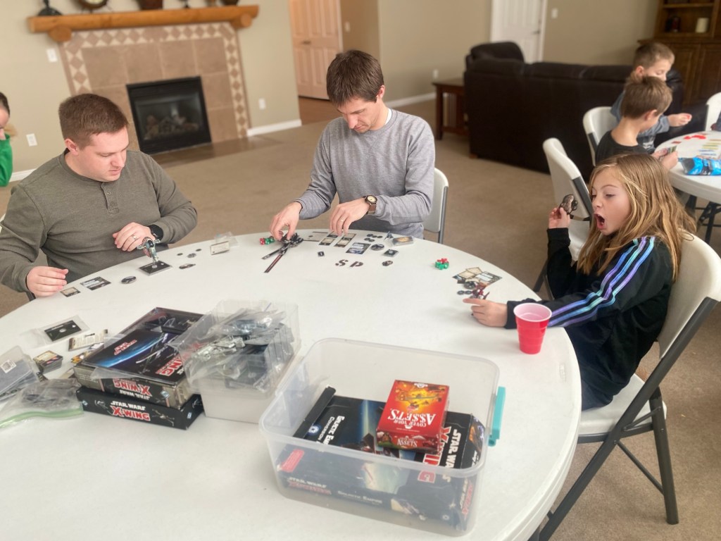 Kaeden & Suzy invited us up for a family game day. Thank goodness, too. Taylor has been itching to play some kind of collectible Star Wars game that I would cheerfully toss into the street and tell it to kick rocks. Arrow decided to give it a shot though 🙂
