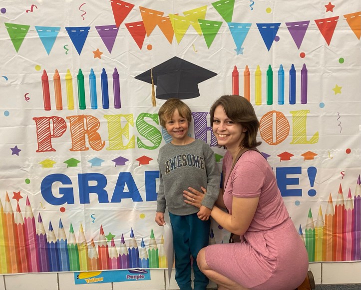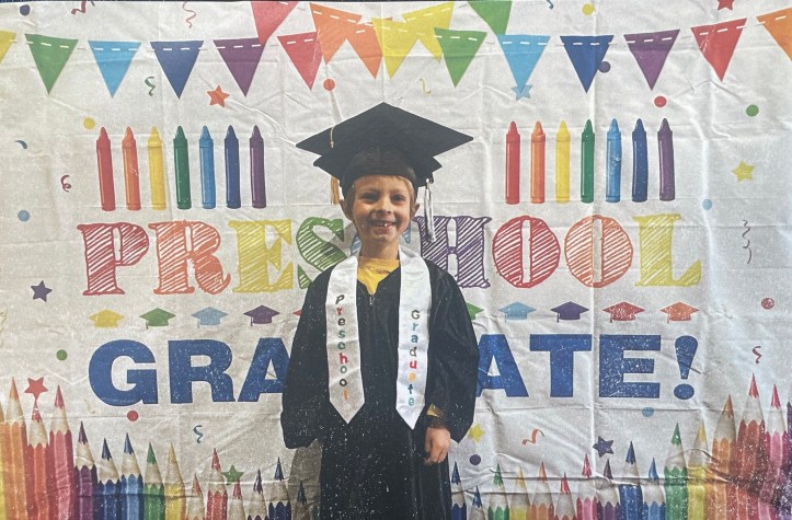 On his final day of preschool, Sander’s class performed some of their favorite songs for the parents.