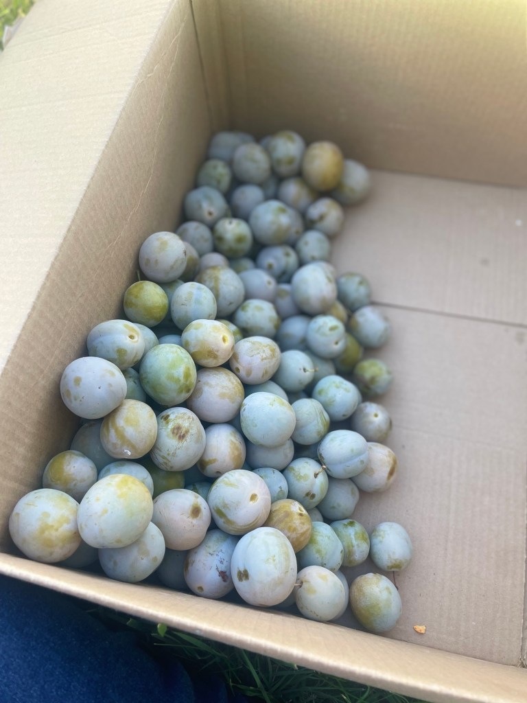 Our peach trees didn’t produce anything, thanks to the aforementioned bandits + last May’s late frost. But did we end up with a lovely bunch of apples and plums.
