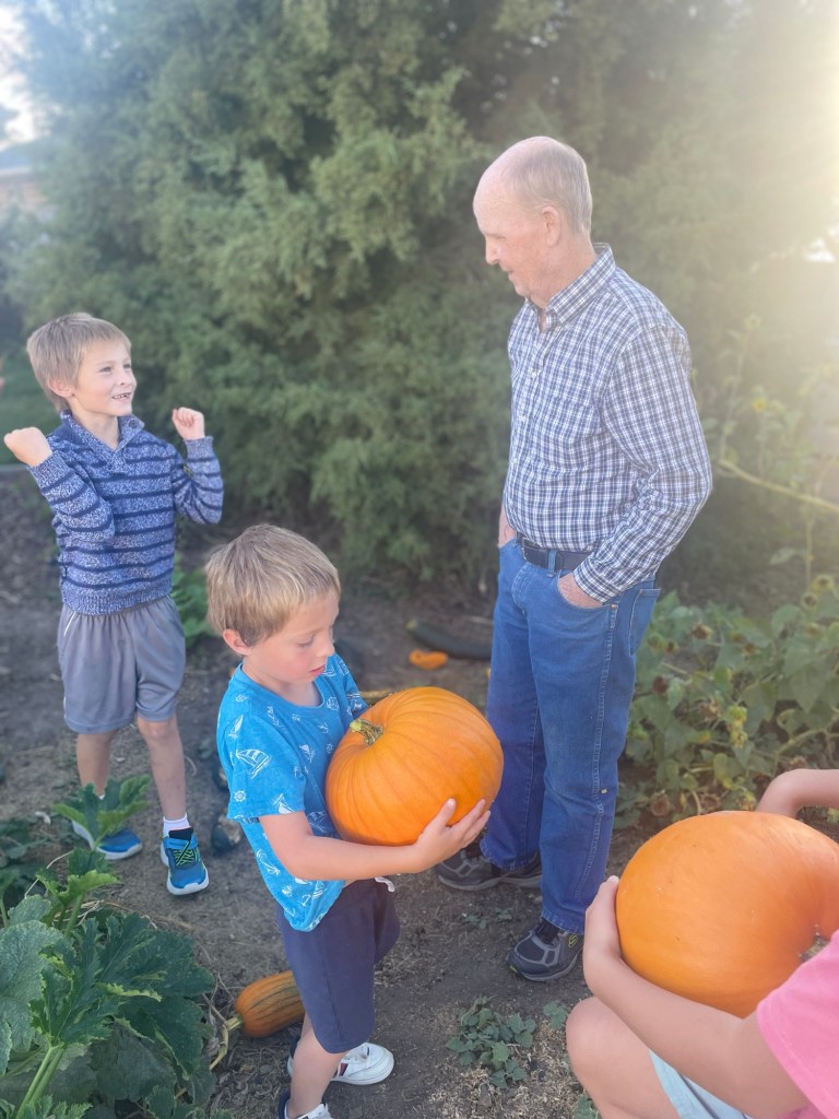 After we gleaned the trees, Grandpa invited the kids to pick a pumpkin from the patch. I’ve got to figure out how he gets his to grow so well. Mine couldn’t be bothered to flower.