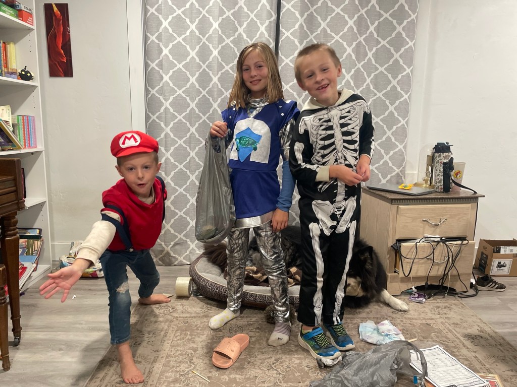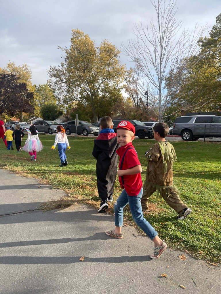 Not only am I grateful to still be a part of the kids’ Trick or Treating, but I’m also so grateful for the interactions with our awesome neighbors. We munched on tater-tots and caramel apples in driveways. Got to pet a scarecrow’s (live!) pet chicken. Such a fun night of community bonding.