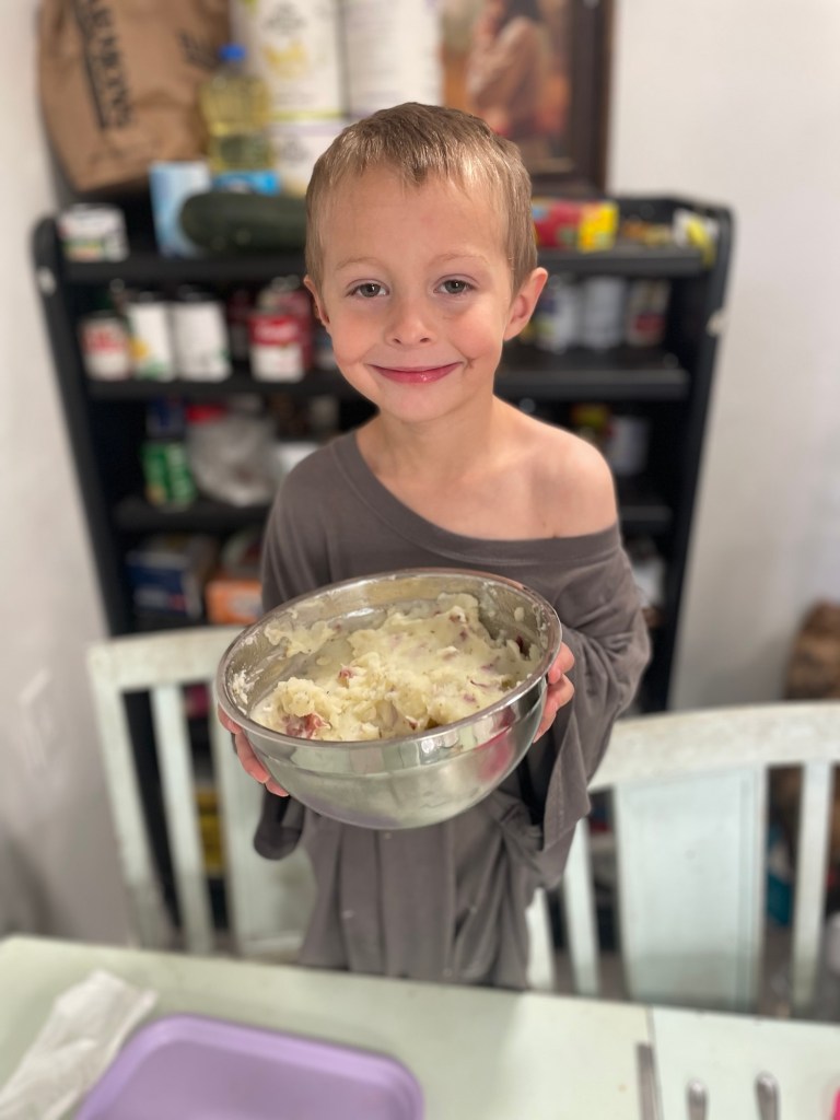 Sander, naturally, was put on potato duty because he is a maniac with the vegetable peeler.