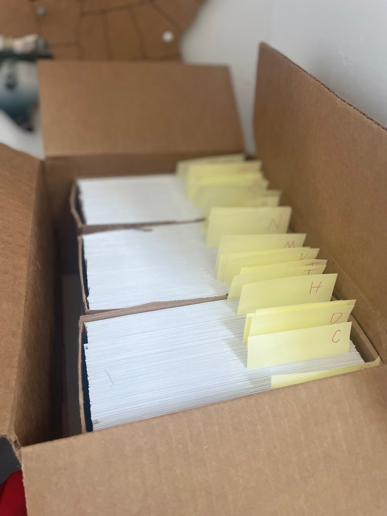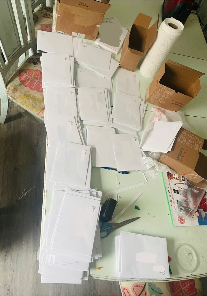 Now, that might seem excessive. Those cards, ideally, have to go somewhere that is not my house or else Taylor will get suspicious that I don’t have as many friends as I claim to have. If you’re thinking that that seems excessive, you’re correct. Not a surprise though. Surely I had enough recipients for the cards.