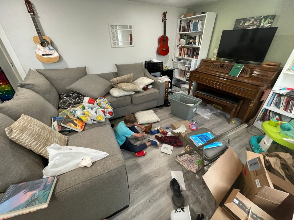 Taylor & I fight the good fight to retain cleanliness, organization, and soft classical music on the Bluetooth speakers.